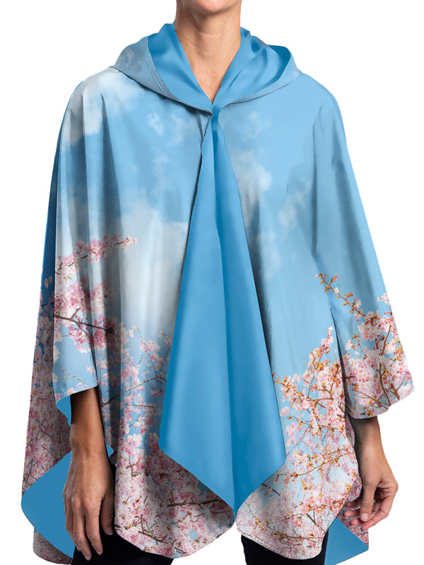 Hassam "Celia's Garden" Reversible Rain Cape Poncho – Lightweight Hooded Wrap for Women