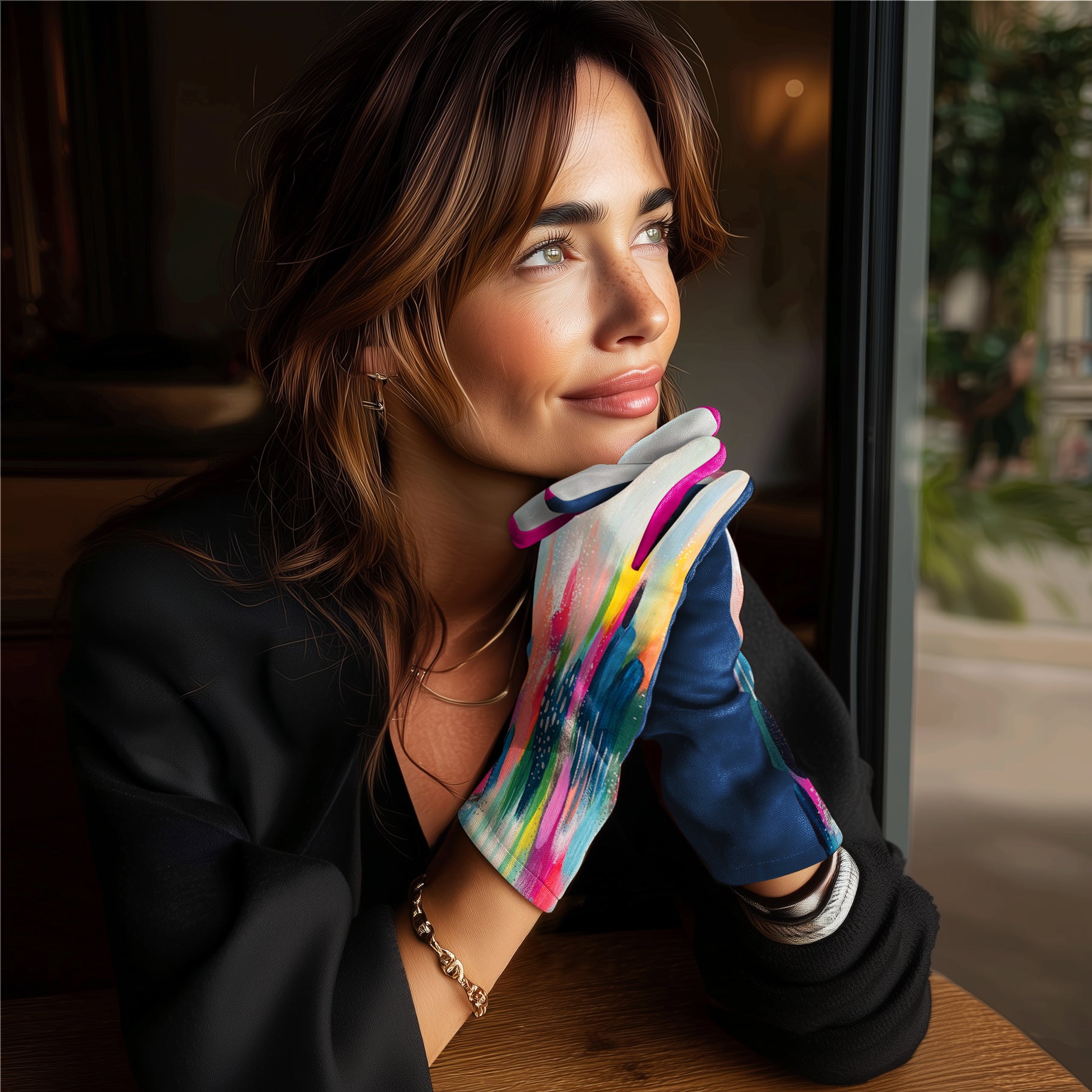 Celebrate natural beauty with a pair of Brush103 Gloves. The gorgeous artwork features Etta Vee's Brush103 shows the exquisite designs inspired by vibrant, colorful designs and bold patterns. The elegant gloves artfully display Jessi Raulet's masterpiece while protecting your hands from sun, wind and cool weather. Add a touch of style to any day – these buttery soft gloves complete any outfit and are ideal for travel, commuting, church and special occasions. Pretty and practical, RainCaper gloves are the perfect gift for stylish women.