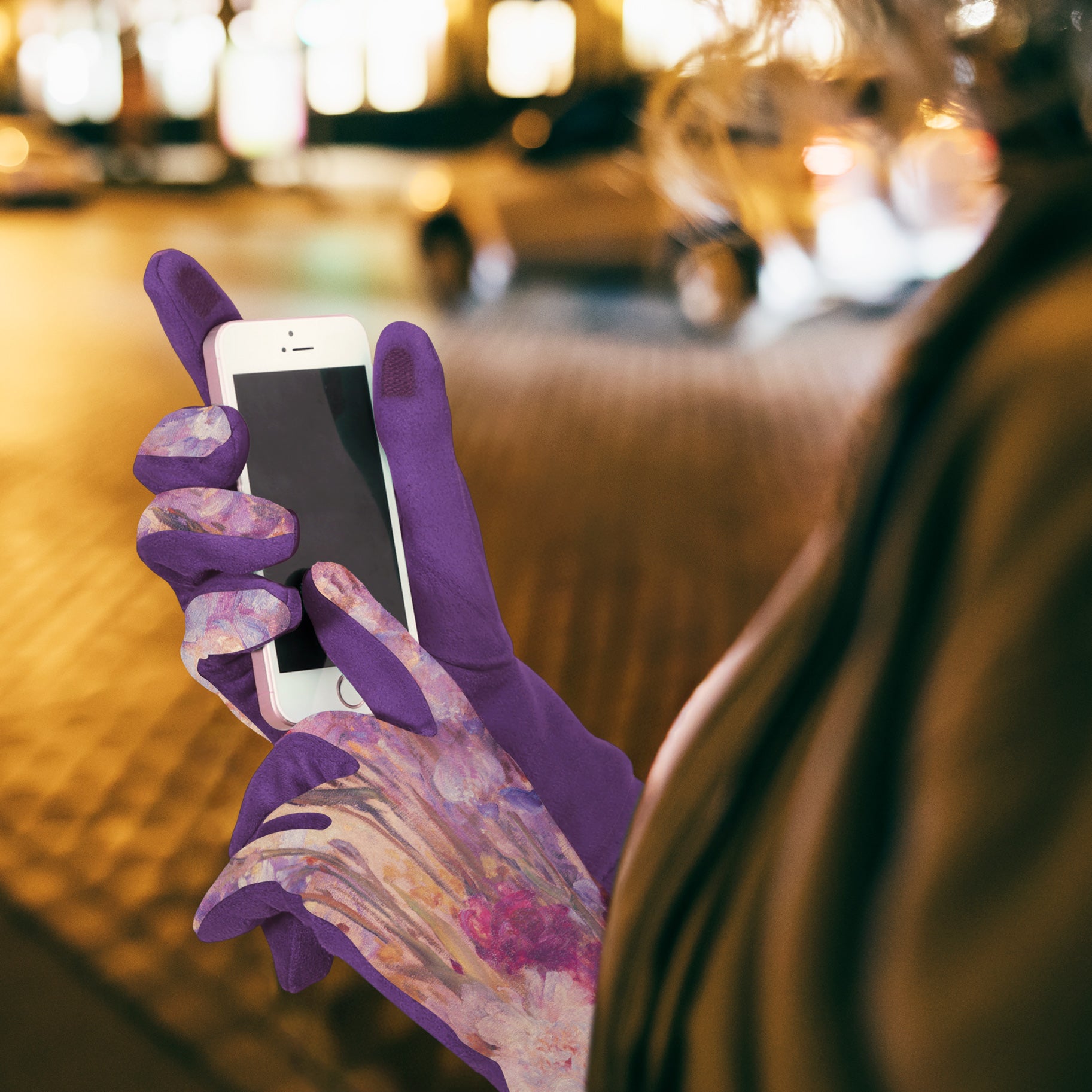 Best known for his iconic stained-glass lamps, Louis Comfort Tiffany was a master of the decorative arts. He was also a painter – one of his loveliest works is Peonies and Iris, an oil painting with rich hues of lilac, moss and marigold. Our print is true to the original art, and designed in collaboration with The Charles Hosmer Morse Museum of American Art, Winter Park, FL. Wear a masterpiece with a pair of our Tiffany Peonies and Iris Gloves- the velvety-soft violet gloves display the gorgeous artwork while protecting your hands from sun, wind and cool weather. Add a touch of elegance to daily life and make an impression – these buttery soft gloves complete any outfit and are ideal for travel, commuting, church and special occasions. Pretty and practical, RainCaper gloves are the perfect gift for stylish women.